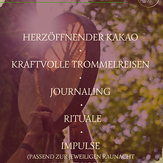 Stell dir vor: Die Magie der Raunächte begleitet dich – nicht nur ein paar Tage, sondern durch das ganze Jahr. Kein kurzes Aufflackern, das wieder verschwindet, sondern ein leiser, liebevoller Faden, der dich trägt und stärkt. 🔥 Im kleinen, exklusiven Kreis öffnen wir einen geschützten Raum voller Wärme und Vertrauen – und laden dich ein zu einer ganz besonderen Reise: Mit der Kraft der Trommel, dem herzöffnenden Kakao und deiner eigenen inneren Stimme. Jeden Monat schenken wir uns einen Abend voller Herzensmagie: ✨ Wir beginnen mit einer sanften Kakao-Zeremonie, spüren die Wärme in unseren Herzen. ✨ Dann ruft die Trommel – ihr Rhythmus trägt dich tief nach innen, schenkt dir Erdung, Kraft und Verbindung. ✨ Zeit zum Journaling und bewusster Innenschau folgt, eingebettet in kleine Rituale & liebevolle Überraschungen, immer abgestimmt auf die jeweilige astrologische Konstellation. Und wenn es die Jahreszeit erlaubt, sitzen wir draußen am Feuer unter dem Sternenhimmel. Die Trommel klingt in der Natur, begleitet vom Knistern des Feuers – du fühlst dich verbunden mit dir selbst, mit Mutter Erde und den Menschen um dich herum. 🔥🌟🫶🏻 Das Jahr des Feuerpferds wartet auf dich: Es lädt dich ein, mutig zu sein, dich selbst an die Hand zu nehmen und im Kreis Gleichgesinnter über dich hinauszuwachsen. Deine Auszeit nur für dich: Im exklusiven Rahmen mit kleiner Gruppe (begrenzte Plätze!) ✨ 2 Stunden Herzenszeit ✨ Jeden ersten Dienstag im Monat um 19 Uhr ✨ Investition in dich: 38,- € (inkl. Kakao) Bei Buchung aller 11 Abende ist das letzte Geschenk für dich – du sparst 38,- €! Lass den Zauber nicht verfliegen – lass ihn lebendig werden! Sichere dir jetzt deinen Platz und schenke dir ein Jahr voller Magie, Trommelkraft & liebevoller Gemeinschaft. Ich freu mich von Herzen auf dich! 💛🤗💫